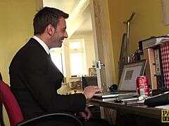Onderdanige Europese slet vastgebonden voor masters enorme pik