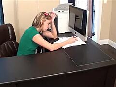 小柄な日本の秘書がオフィスで研修生に無修正JAVフェラ!