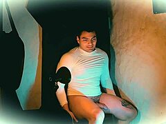 oriental ladyboy stripping and wanking off close up