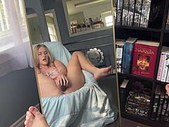 Nerdy Blonde Watches Creamy Pussy Drip on Massive BBC Dildo