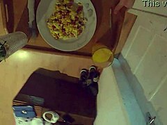 Cherry L Colles in durchsichtigem Lingerie beim Frühstücks-Fuß-Tease!