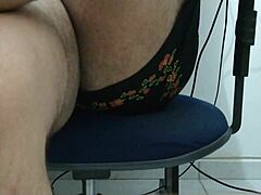 אמא חורגת מתגרה עם רגליים חצויות בגרבונים, נותנת הכאת יד בעקבים גבוהים