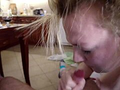 Pregnant brunette wife gives deepthroat blowjob to big cock on homemade camera for intense cumshot thrill.