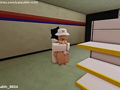 In this hentai game, the character uses a dildo on her big nipples and tits