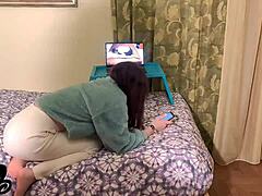 This horny stud doggy fucks me watching old vids