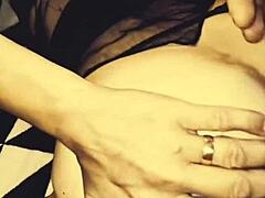 exotic dancer in lingerie strips and teases with handjob in private femdom session