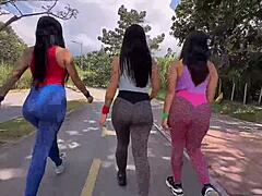 Three amateurs ride cock in outdoor anal pov