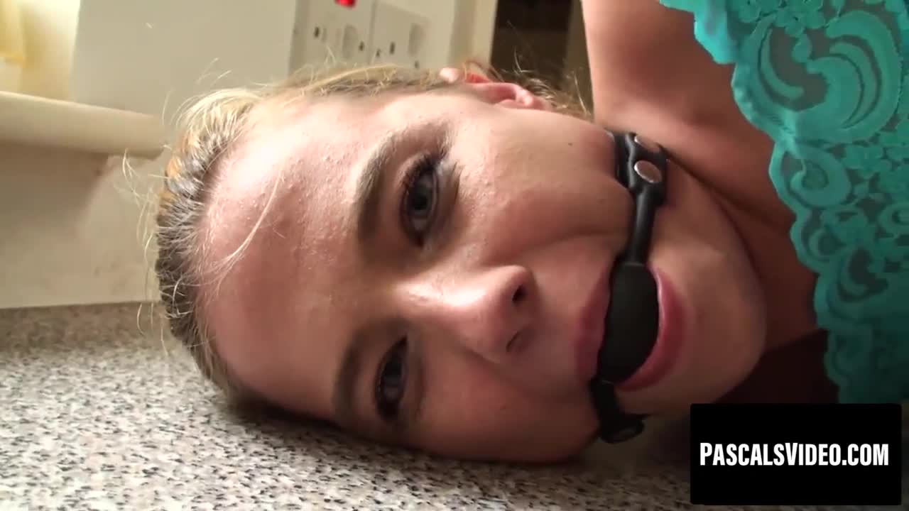 Blondinka sužnja vezana in jebana s kumom v ustih