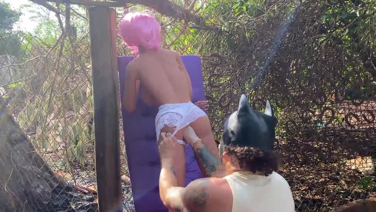 He took his girlfriend to a creepy abandoned house and banged her hard outdoors.