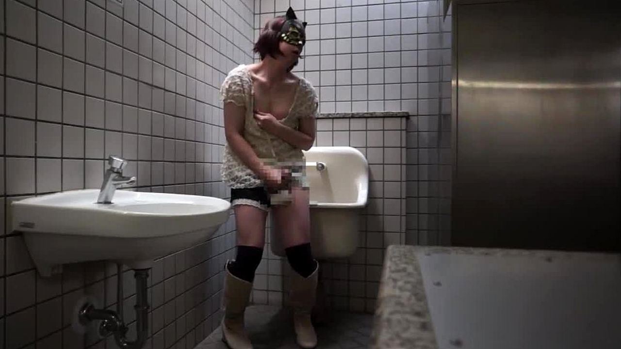 Horny hore leker alene på offentlig toalett